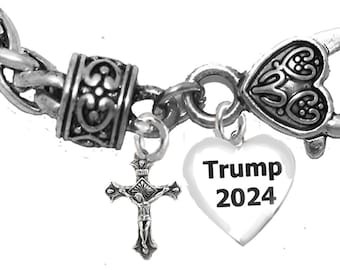Crucifix, Trump 2024 Heart, Adjustable Antique Wheat Chain Bracelet, What A Wonderful Gift For Yourself, Or A Friend, Or A Family Member, Or As A Donor Gift.Hypoallergenic, Nickel, Lead, And Poisonous Cadmium Free ©2022