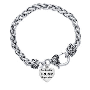 Deplorable Trump Supporter Heart On A Silvertone Antique Wheat Chain Bracelet, What A Wonderful Gift For Yourself, Or A Friend, Or A Family Member, Or A Donor Gift. Hypoallergenic, No Nickel, Lead, Or Cadmium In The Metal. ©2023
