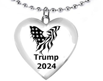 Eagle With American Flag Wings, Trump 2024, Ball Chain Necklace. What A Wonderful Gift For Yourself, Or A Friend, Or A Family Member, Or As A Donor Gift. Hypoallergenic-Safe. Metal Is Nickel, Lead, And Cadmium Free. ©2022
