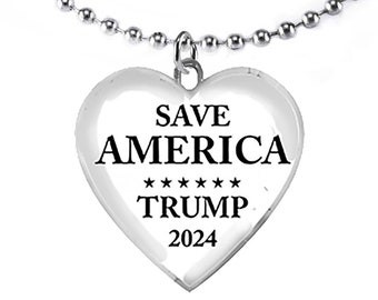 SAVE AMERICA, Trump 2024, Ball Chain Necklace. What A Wonderful Gift For Yourself, Or A Friend, Or A Family Member, Or As A Donor Gift. Hypoallergenic-Safe. Metal Is Nickel, Lead, And Cadmium Free. ©2022
