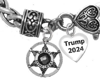Sheriffs’ For Trump, Genuine Crystal Heart, Adjustable Antique Wheat Chain Bracelet, What A Wonderful Gift For Yourself, Or A Friend, Or A Family Member, Or As A Donor Gift.Hypoallergenic, Nickel, Lead, And Cadmium Free ©2022