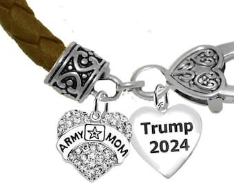 Trump 2024, Army Mom, On A Dark Brown Leather Bracelet, What A Wonderful Gift For Yourself, Or A Friend, Or A Family Member, Or As A Donor Gift. Hypoallergenic-Safe,No Nickel, Lead, Or Cadmium.©2021
