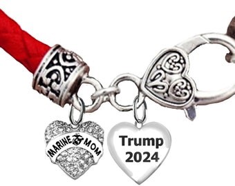 Trump 2024, Marine Mom, On A Red Leather Bracelet, What A Wonderful Gift For Yourself, Or A Friend, Or A Family Member, Or As A Donor Gift. Hypoallergenic-Safe,No Nickel, Lead, Or Cadmium.