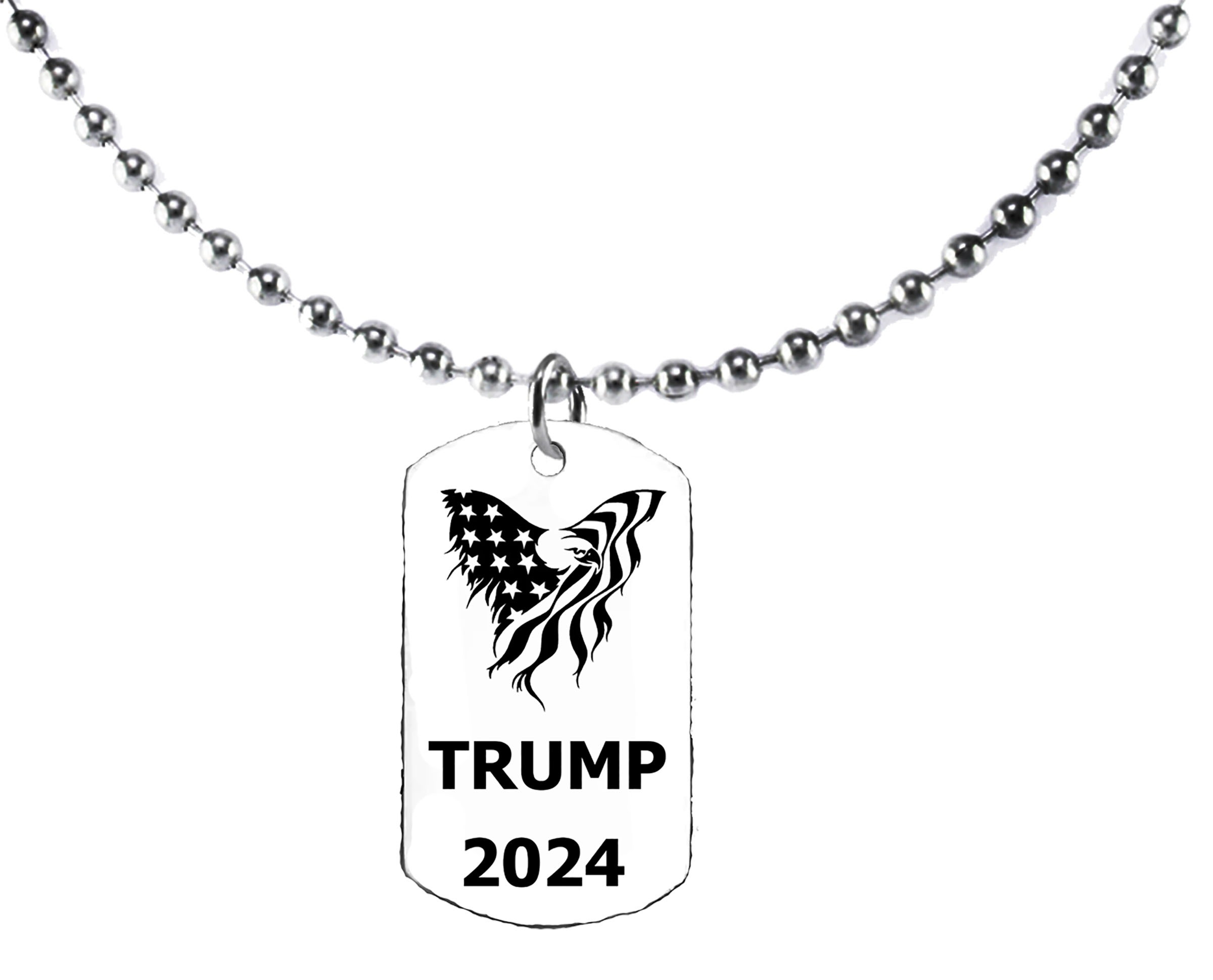 American Flag Eagle, Trump 2024 Dog Tag On A  18 Inch Ball Chain, Hypoallergenic-Safe, No Nickel. Lead, Or Cadmium In The Metal.©2023